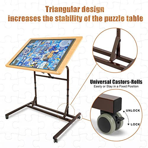 【Easy to Move with Universal Castors】Puzzle table with 4 Universal Castors,it may be easily moved anywhere, two of the Roller Wheels will also be locked to hold the table where you wish to have it and prevent the puzzle table from getting away from you