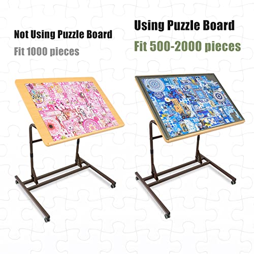 【Compatible with multi-size puzzles】The Puzzle table area measures 31.5’’x22.8’’, Customers can use their own 1000pc-2000pc board, which will also be easily used on our desk with strong stability.when customer does not use the puzzle borad,Only Puzzle table fit 1000 pieces.Oversize Puzzle holder enough to fit many sized Puzzle.