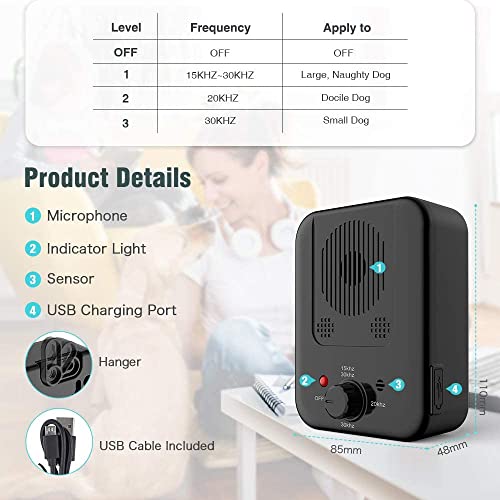 🐾【3 Levels of Operation】The anti barking device with 3 adjustable ultrasonic volume levels -low, medium, and high, 15KHZ-30KHZ applies to the large, naughty dogs. 20KHZ applies to the docile dog. 30KHZ applies to small dogs. It’s recommended for dogs aged from 6 months to 8 years old. Please turn the knob to test different frequency bands to obtain the best results. because different levels of ultrasonic will have different affections