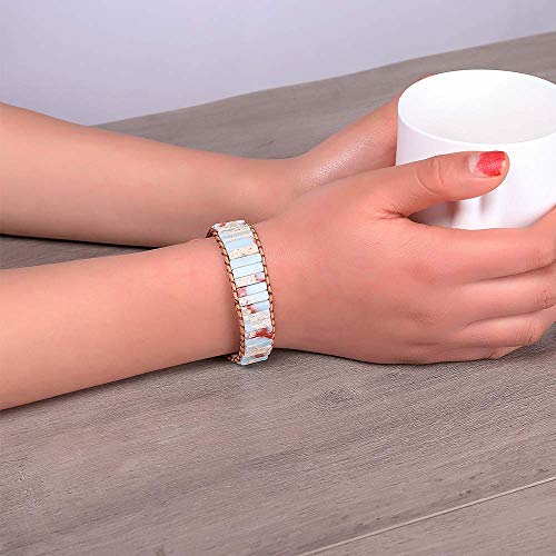 Plumiss 7 Chakra Bracelets for Women Boho Handmade Natural Jasper Stone Healing Energy Bead Leather Wrap Bracelet…