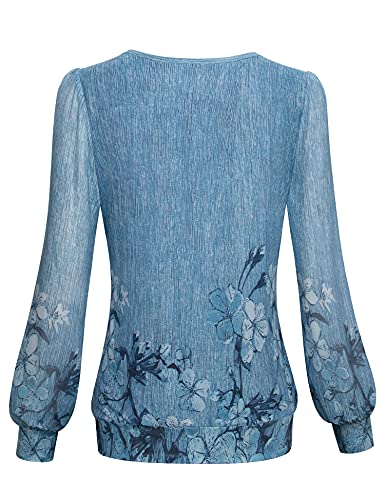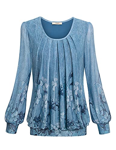 Timeson Women’s Long Sleeve Scoop Neck Pleated Front Fitted Blouse Tops